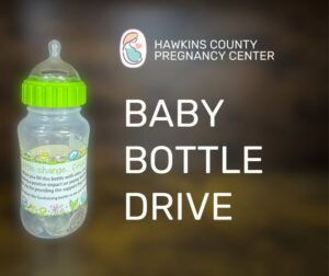 Our association (Holston Valley Baptist Association) operates the Hawkins County Pregnancy Center and one of their fundraisers for the year is the “Fundraising Baby Bottle”. Anyone is welcome and encouraged to take one or more of the bottles, fill it with change, cash, or checks, and return it to the church office. We will be working on this fundraiser through the end of February. So, fill those bottles and help make a positive impact on young families in our community.